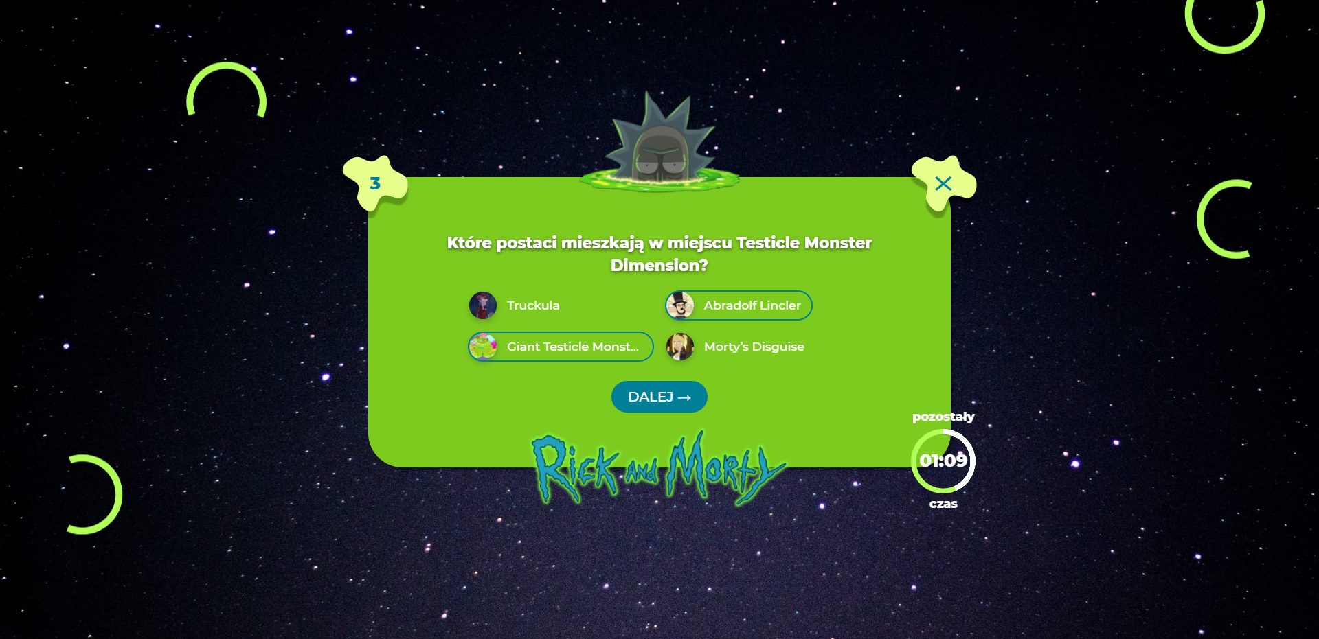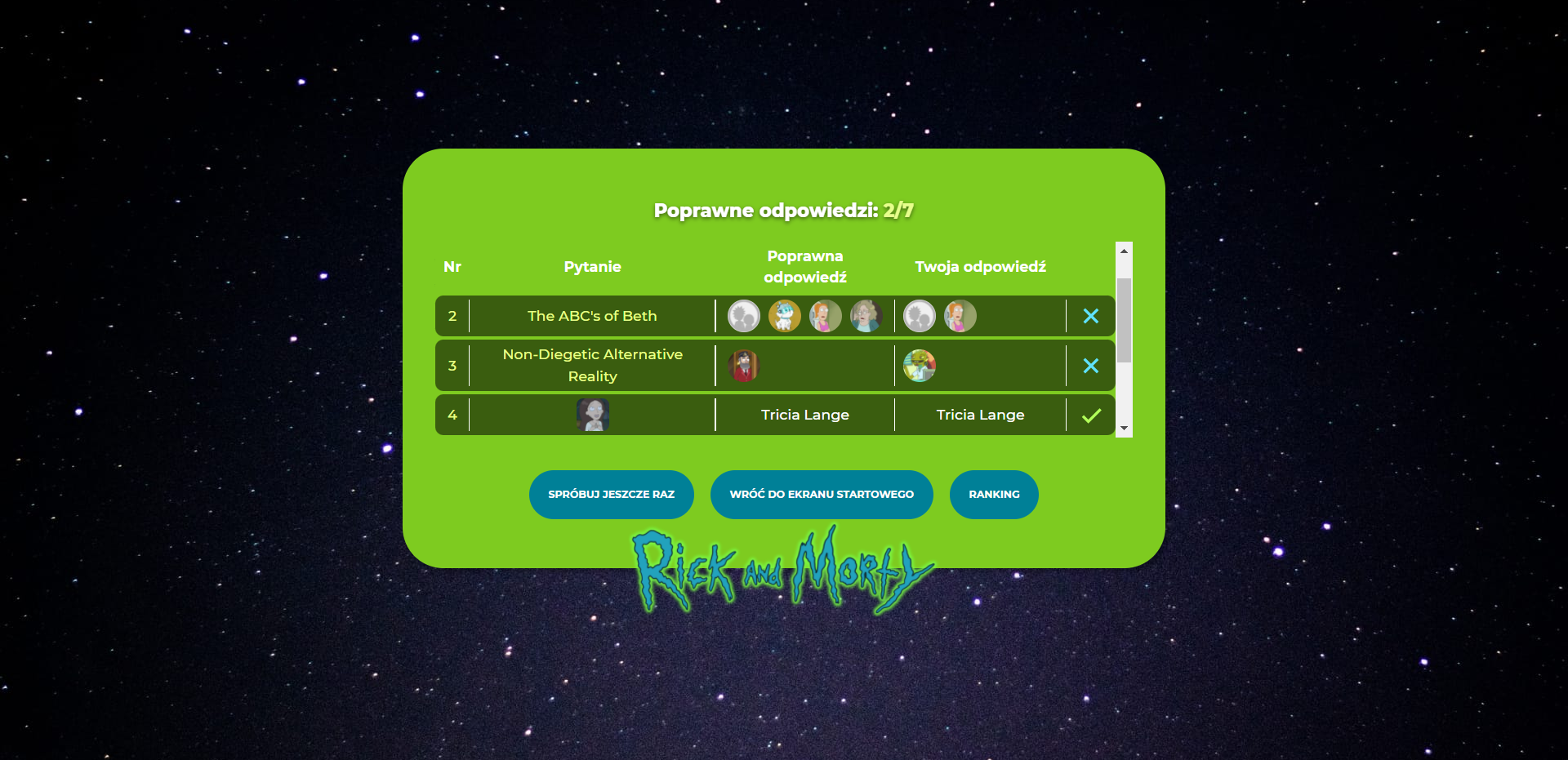 Celem projektu było dostarczenie aplikacji pozwalającej sprawdzić swoją wiedzę na temat serialu Rick And Morty. Dane do quizu pozyskano z Rick and Morty API.