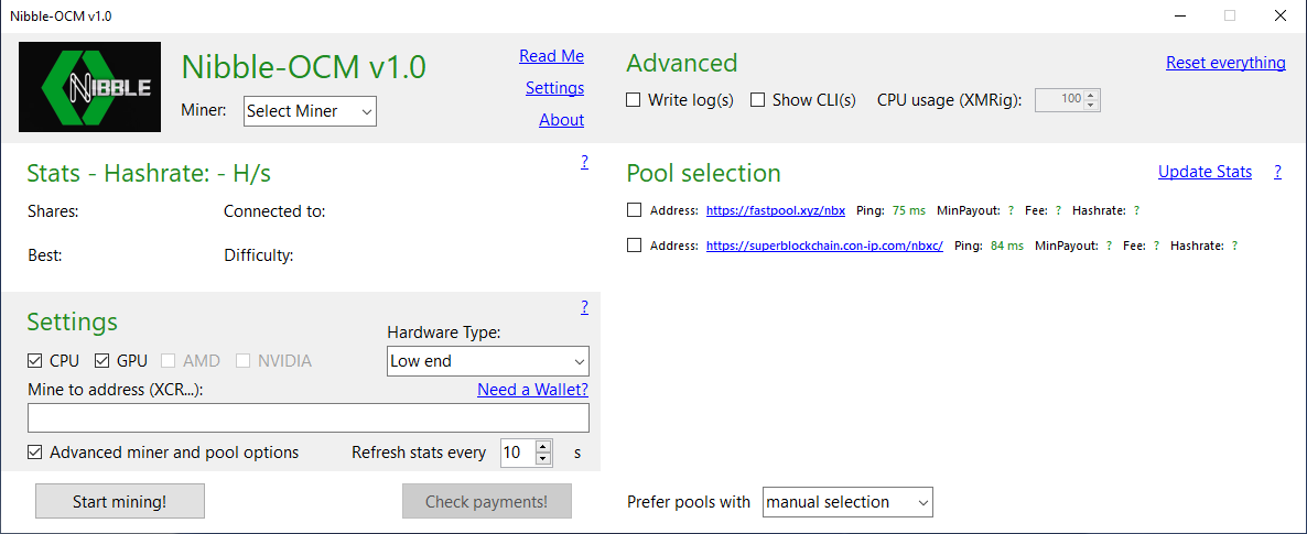 Nibble-OCM is a GUI for the cryptonight mining software xmr-stak by @fireice-uk