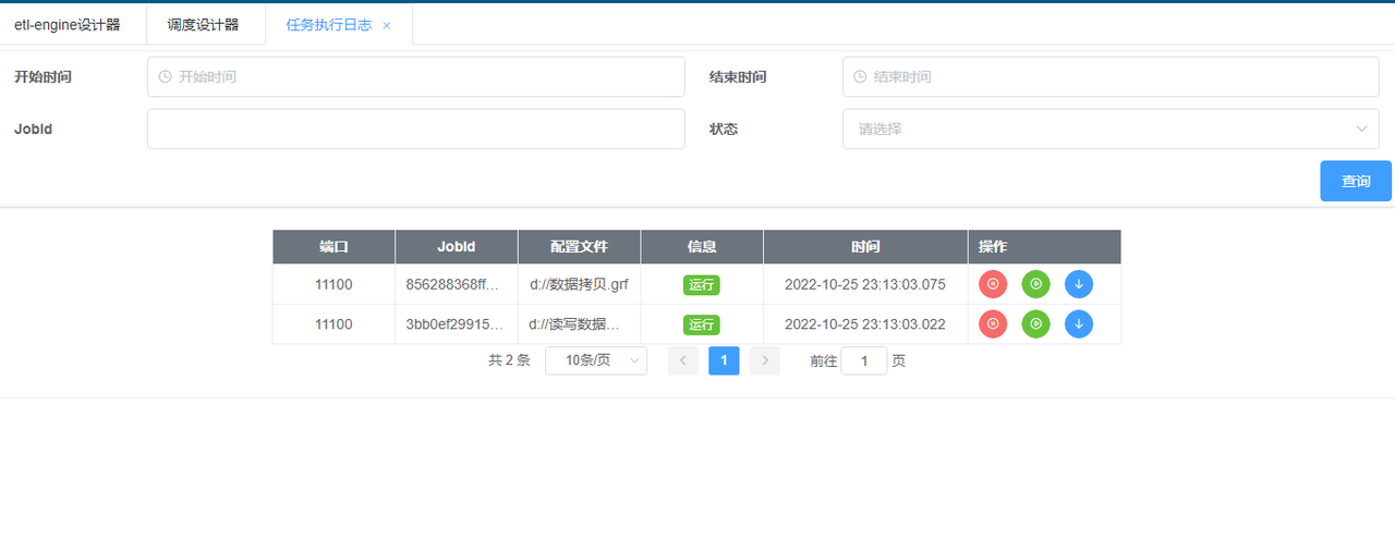 - etl-designer云端设计器通过拖拉拽的方式生成etl-engine引擎可识别的etl任务配置文件,