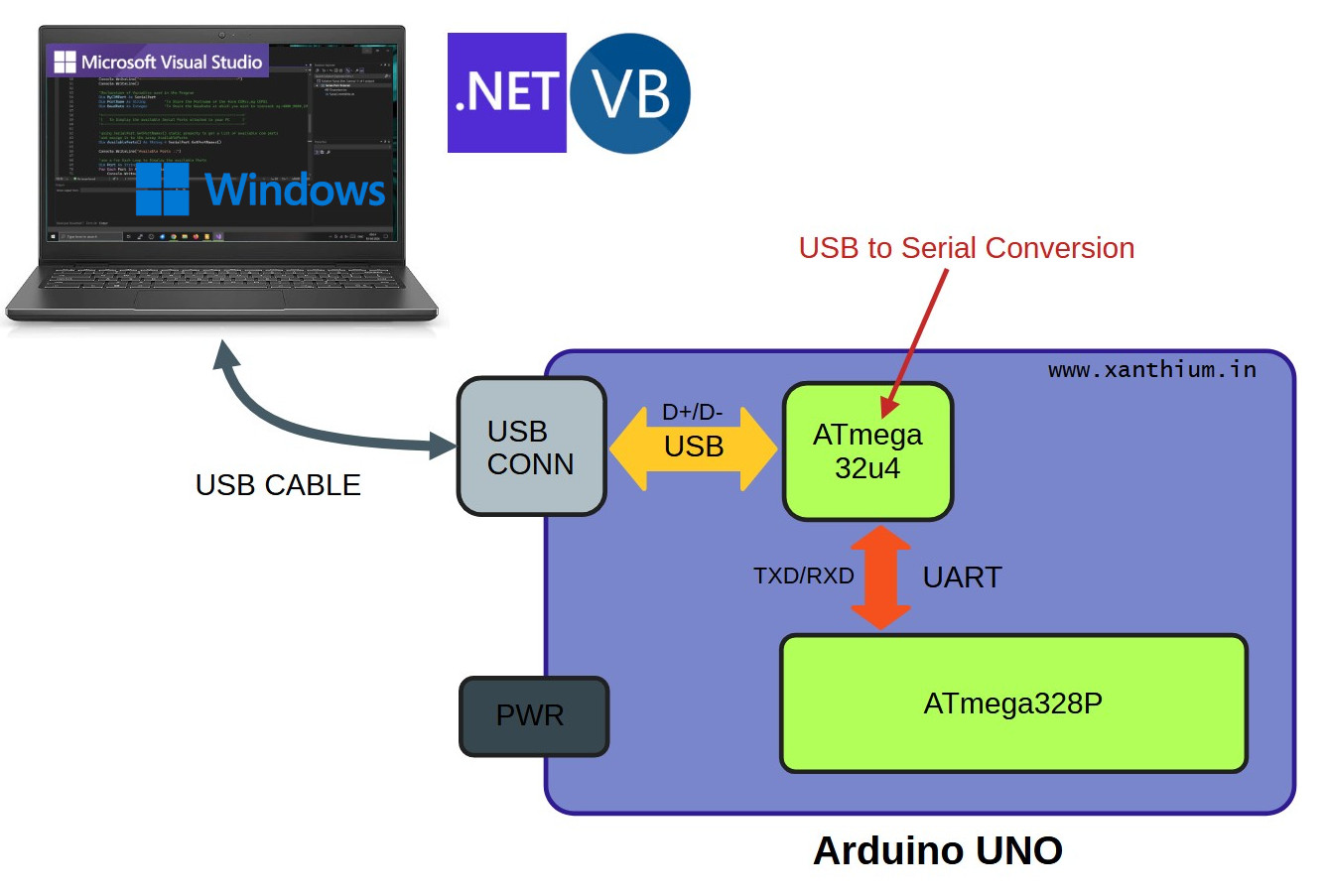We will learn to program the USB Virtual serial port of a PC using Visual Basic.net and .NET platform [.NET Framework 4.5 +,.NET Core,.Net8/9] on Windows and Linux Systems